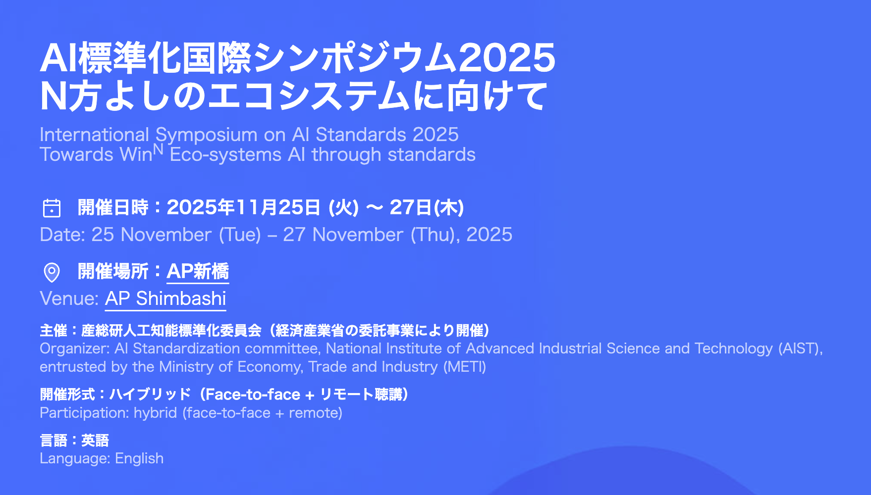 「AI標準化国際シンポジウム2025:N方よしのエコシステムに向けて」を開催いたします