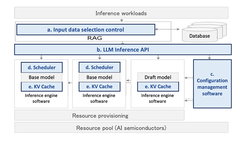 To advance the domestic computing infrastructure that supports the development and supply capacity of AI, we will research and develop technologies that evaluate a variety of AI semiconductors and realize high-efficiency computing resources. We will establish a testbed consisting of multiple emerging AI semiconductors that are expected to offer high performance and low power consumption, and conduct multifaceted evaluations of their performance, energy efficiency, usability, operability for AI development, as well as clarify utilization guidelines according to the application. In addition, to improve the efficiency of computing resources, including these AI semiconductors, we will develop a tool for AI workload execution performance prediction and high-efficiency, high-performance inference systems.